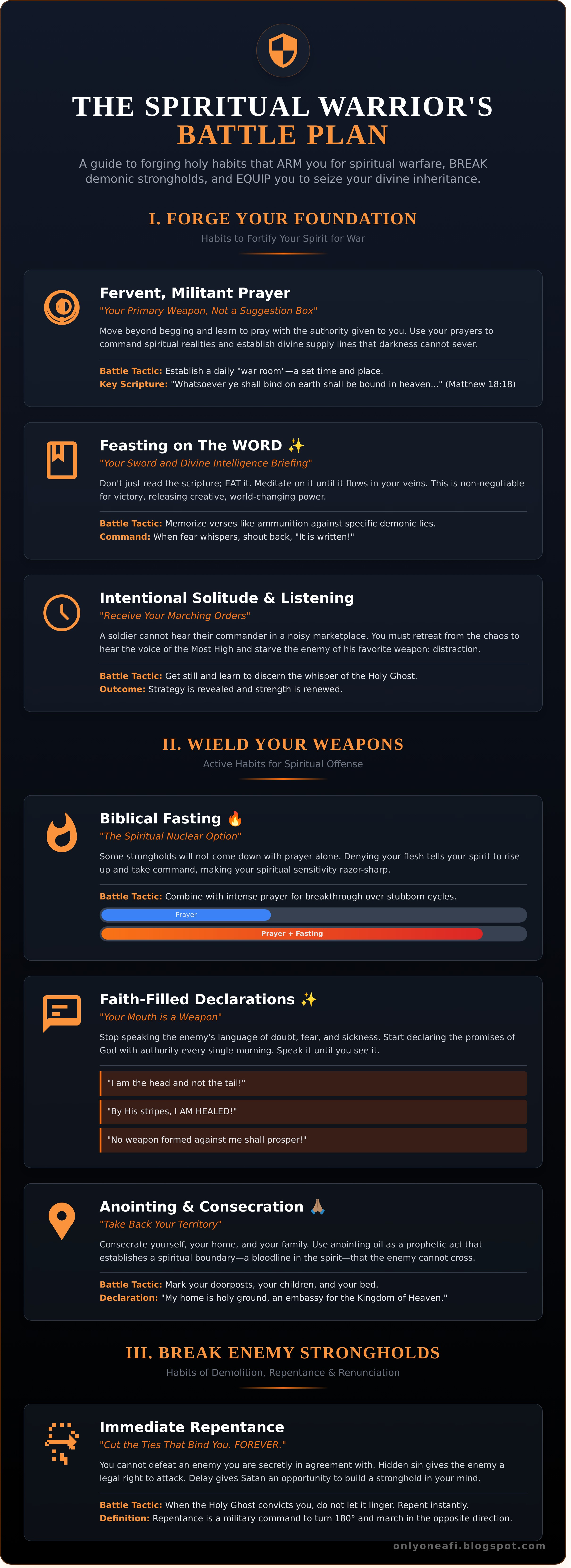 These aren't just suggestions; they are non-negotiable commands for every soldier in God's army. By embedding these daily spiritual growth habits into your life, you maintain your victory and create a powerful defense against every attack. Find more spiritual warfare strategies at onlyoneafi.blogspot.com.